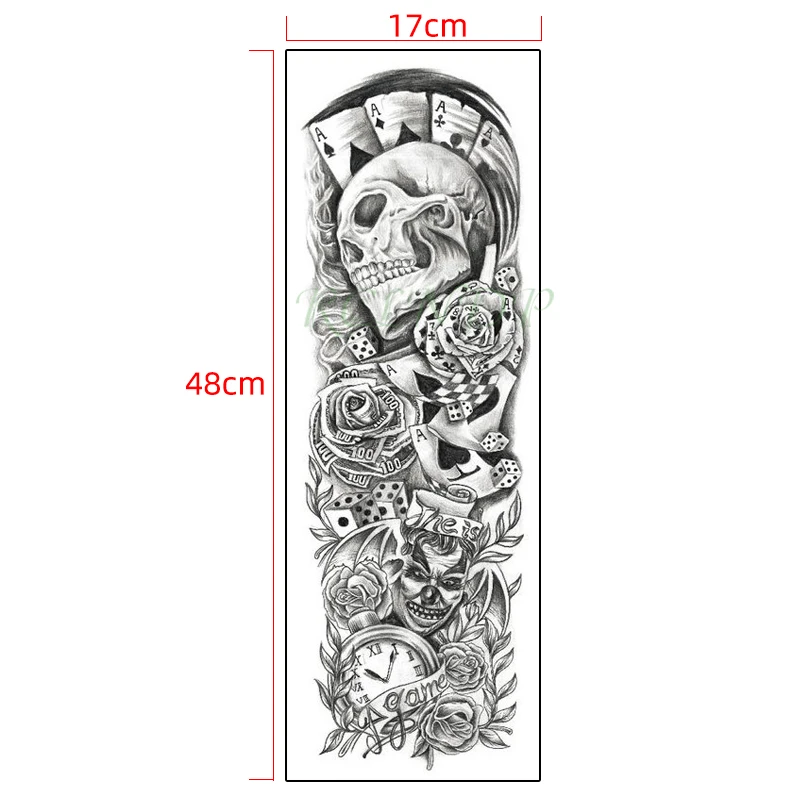 Waterproof Temporary Tattoo Sticker Playing Card Dice Skull Clown Clock Rose Full Arm Fake Tatto Flash Tatoo For Men Women Aliexpress Mobile